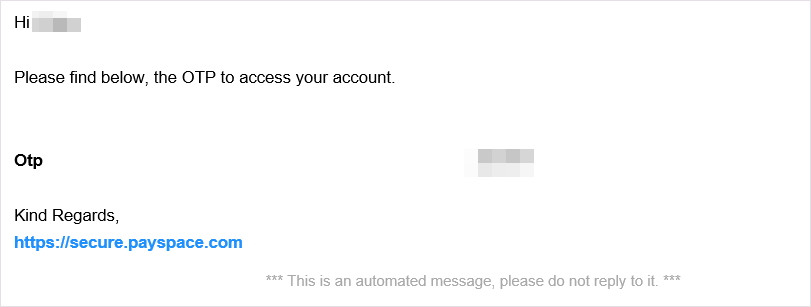 Log in to PaySpace and opt for the option "Send Email" or "Send SMS" to receive the OTP to log in.
