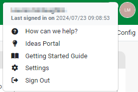 Once the user has logged in, they need to select their initials and select the settings option.