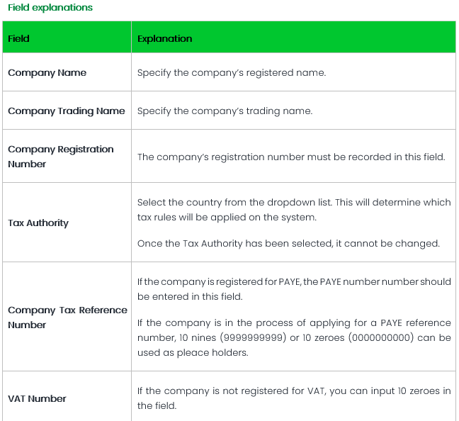 This feature is available on all PaySpace editions. The Statutory Fields tab is located on the Basic Company Information screen. In addition to governing the tax rules for the payroll, the tax authority selected on the Company Details tab will ...