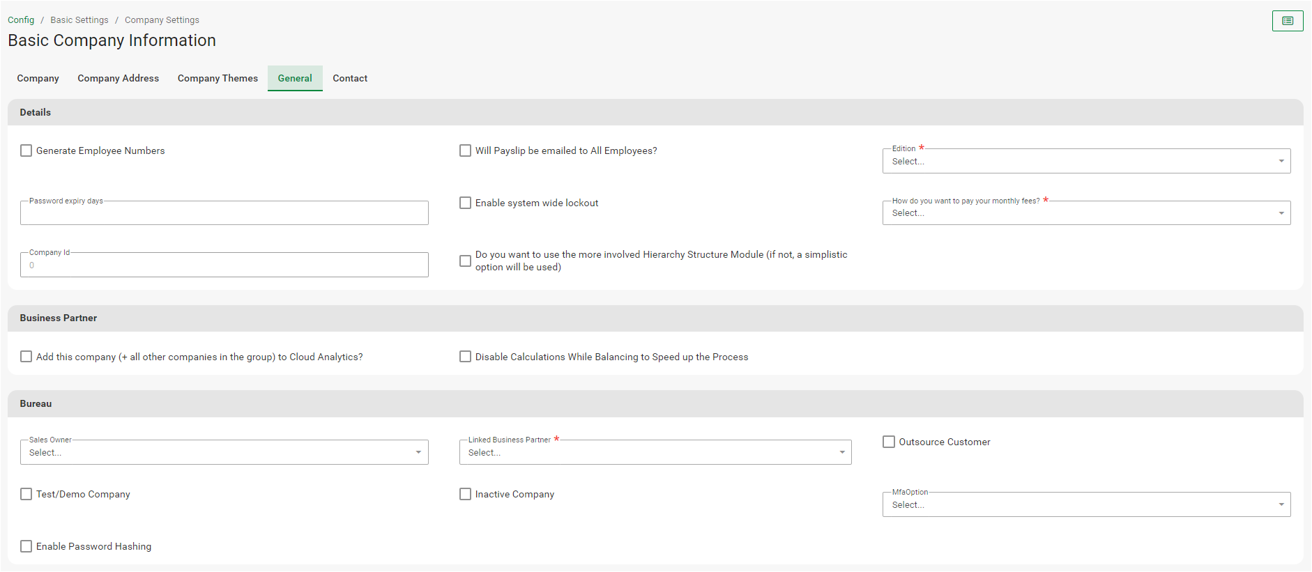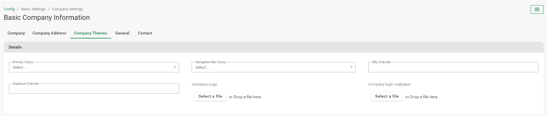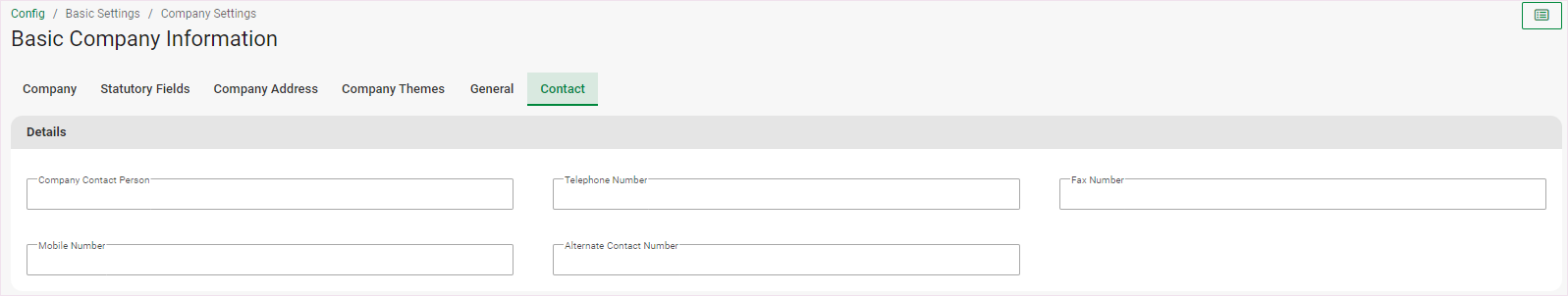 The Basic Company Information Screen consist of the below six tabs:
