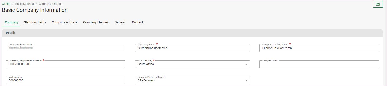 Navigate > Configuration > Basic Settings > Company Settings > Basic Company Information.