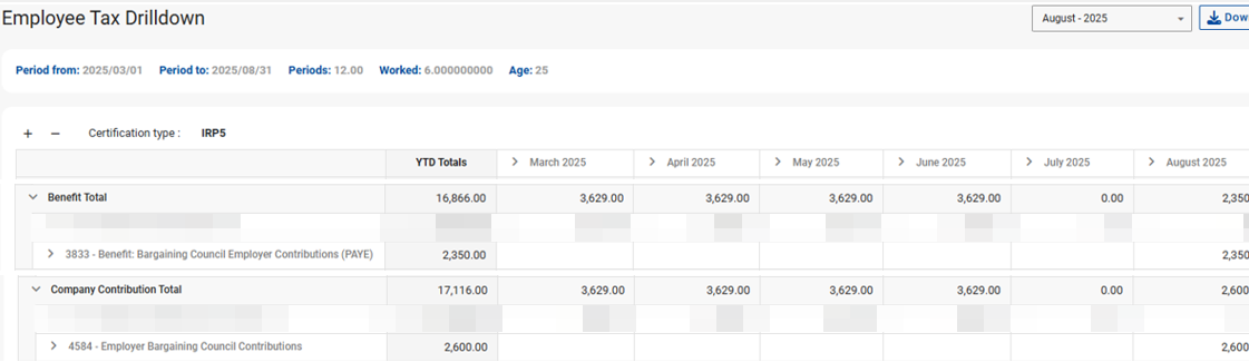 3. Add the relevant Bargaining Council component with the required amount to balance the fringe benefit and company contribution components.