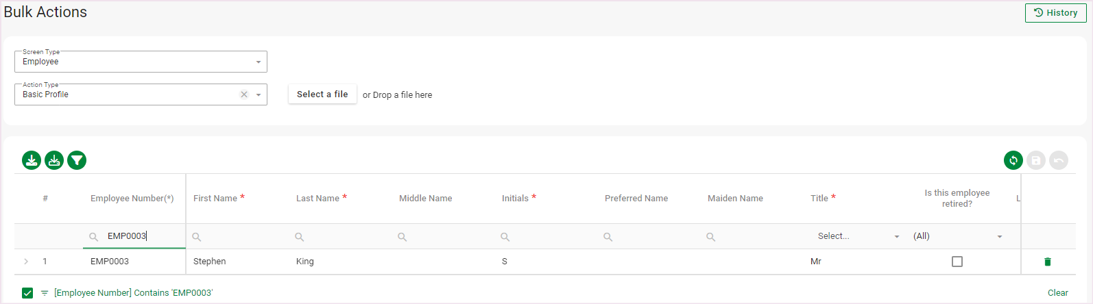 Overview Besides on boarding new employees individually, you can upload employees using the Bulk Actions Screen. Where a frequency is added, or a new company is registered during the tax year, the system will automatically create an Interim Run to ...