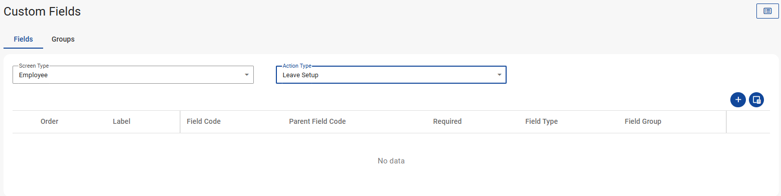 Can a custom field be created on the Leave Setup screen?