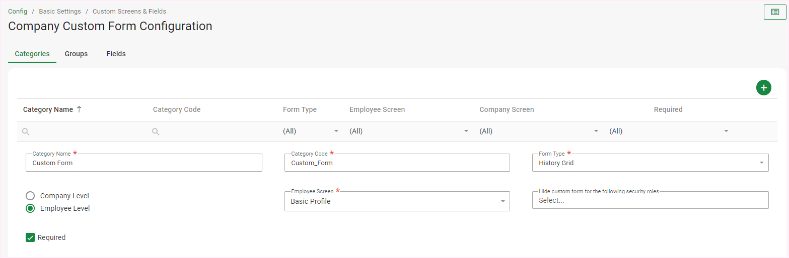 Navigate > Configuration > Basic Settings > Custom Screens & Fields > Custom Form Configuration