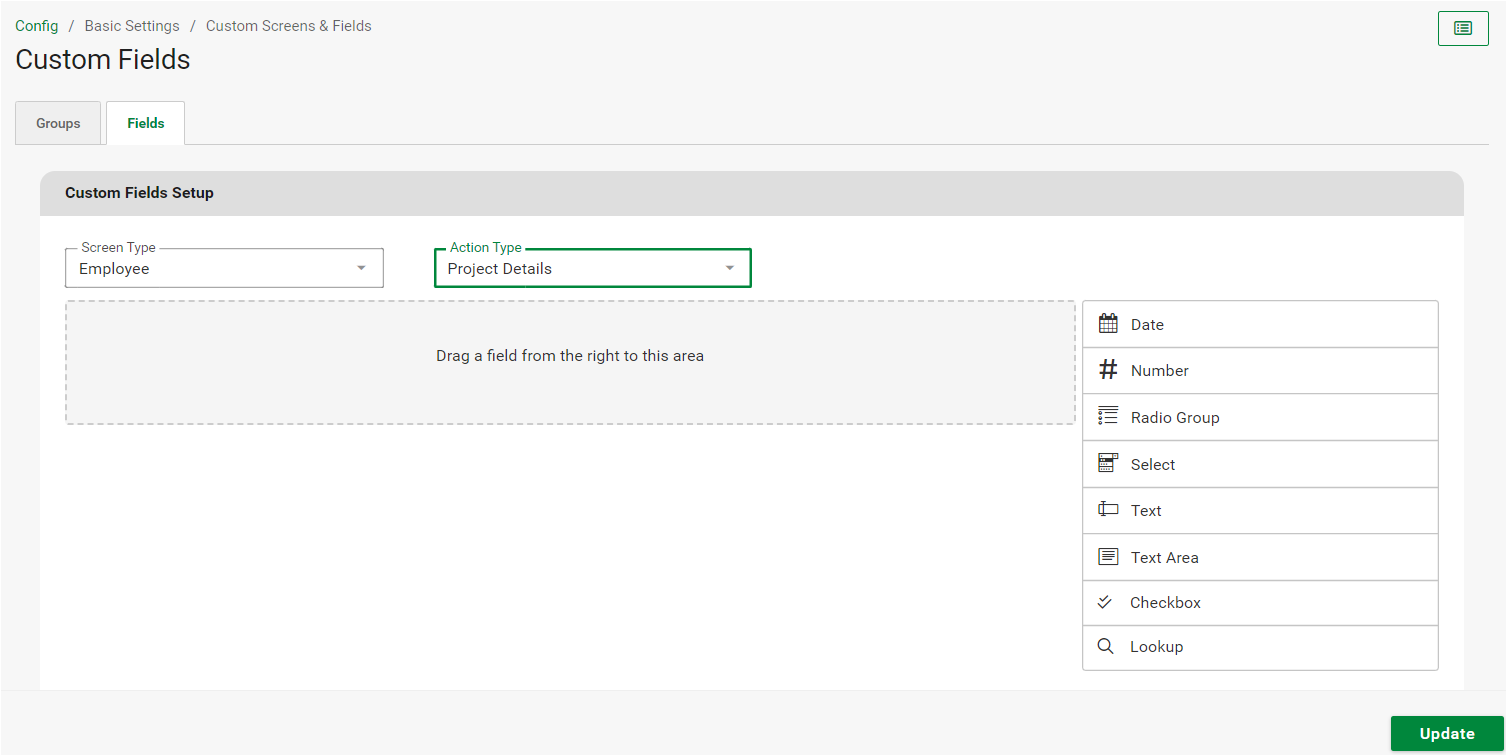 Navigate > Configuration > Basic Settings > Custom Screens & Fields > Custom Fields