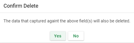 If information has been processed for the field that you want to delete, you will receive a pop-up notification to confirm the deletion of the field.
