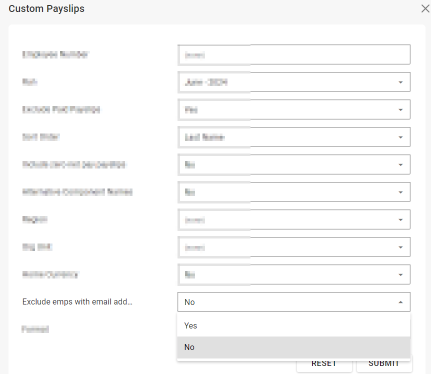 A new parameter labelled "Exclude emps with email addresses" has been added to the Custom Payslip Report. When the "Yes" option is selected, then the payslips that are included are limited to employees that do not have an email address, assisting users to generate PDF payslips for employees who don’t access ESS for payslips.