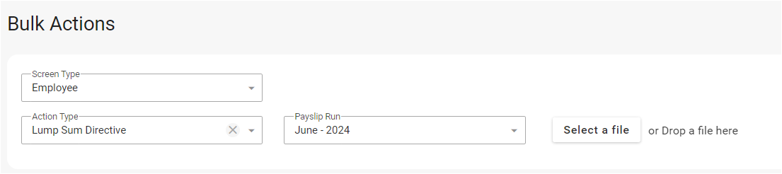 Overview In addition to processing payroll data for individual employee records, payroll information can also be managed through the Bulk Actions Screen. Bulk entries can be uploaded to either the Payslip Edit Screen or the Recurring Components ...