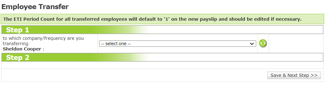 Navigate > On / Off Boarding > Transfer