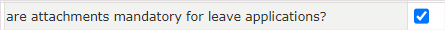 Yes. Attachments for leave applications can be made mandatory after a specified amount of days, by enabling the "are attachment mandatory for leave applications?" check box and then entering a value in the "after how may days?" field below it.