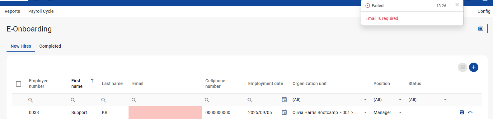 This feature is available on all Deel Local Payroll powered by payspace editions Yes. New hire records can be deleted if they are not yet enrolled. Navigate > On/Off Boarding > E-Onboarding