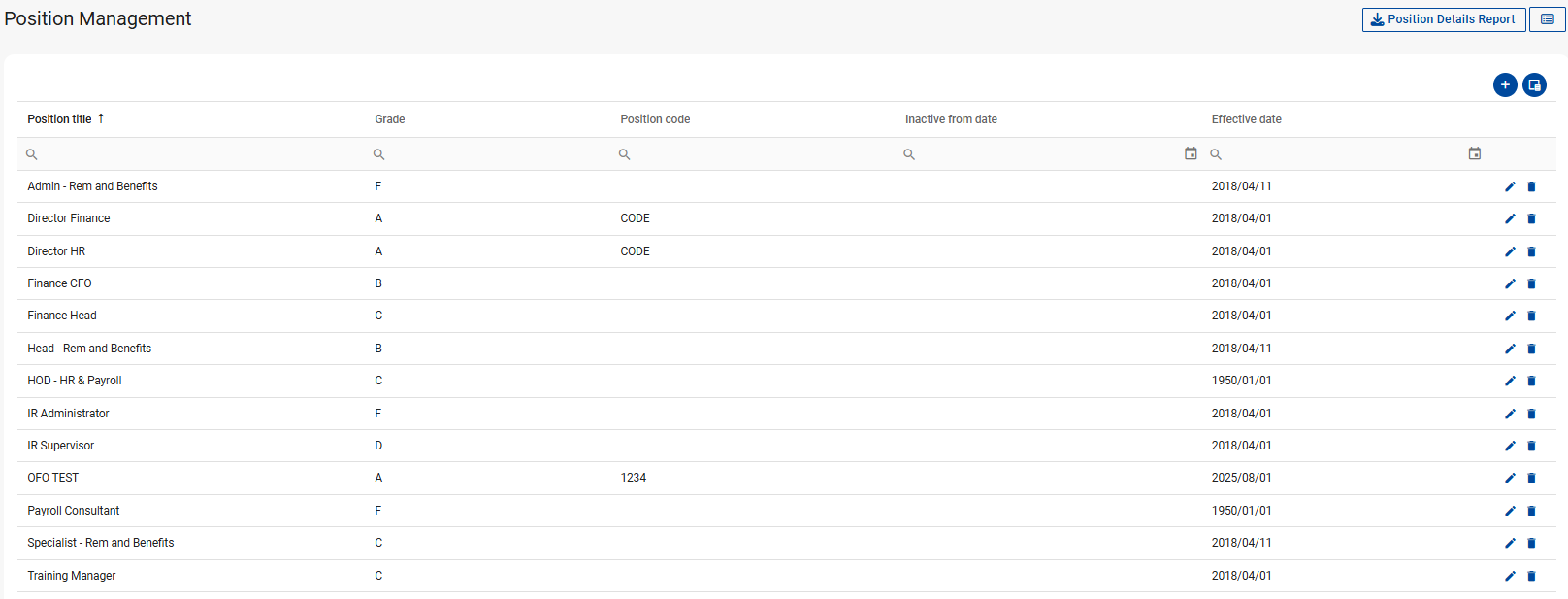 Navigate > Config > Human Resources > Organisation Structure > Position Management