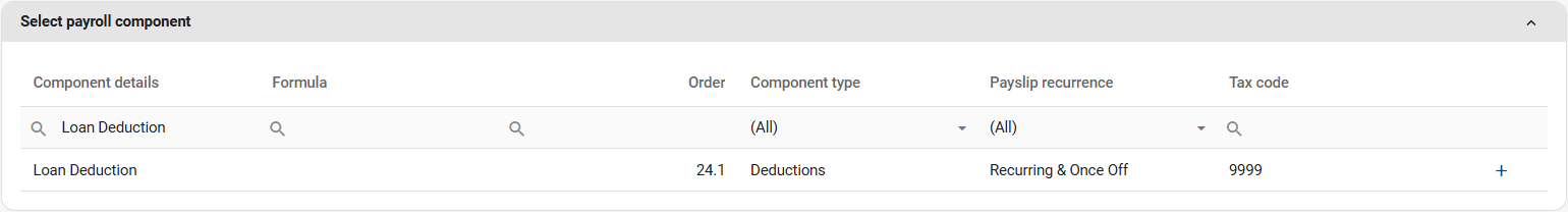 Step 1: Search for and select the Loan Deduction component.