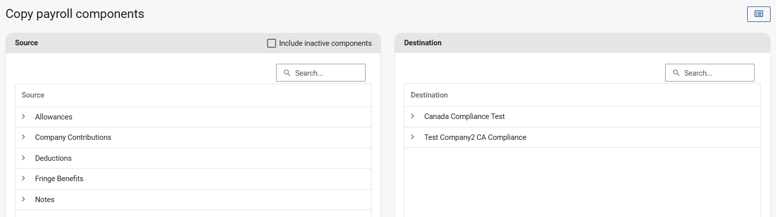 Navigate > Config > Payroll > Payroll Config > Copy Payroll Components