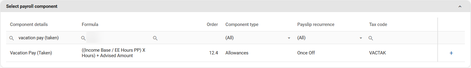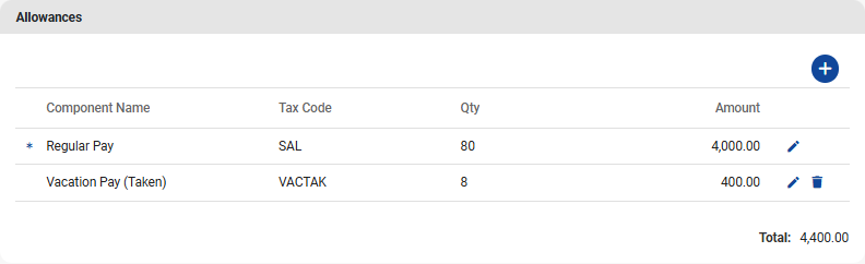 Step 2: Process the Vacation Pay (Taken) component on the employee's payslip. This will add the Vacation Pay amount on top of the Regular Pay.