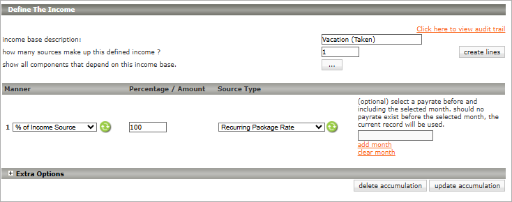 Rename (optional) and select the "Income bases and formulas" to setup the component's income base on the "Define The Income" window.