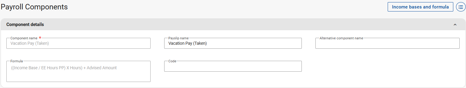Step 1: Create the Vacation Pay (Taken) component on company level.