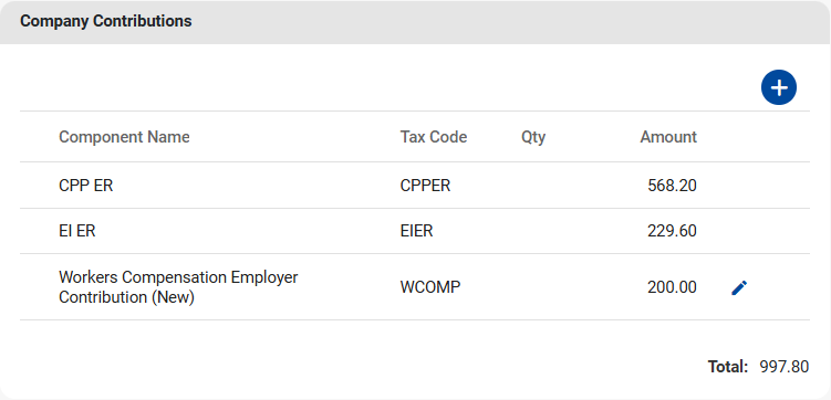 Navigate > Employee > Payroll Processing > Recurring Payroll Components > Company Contributions