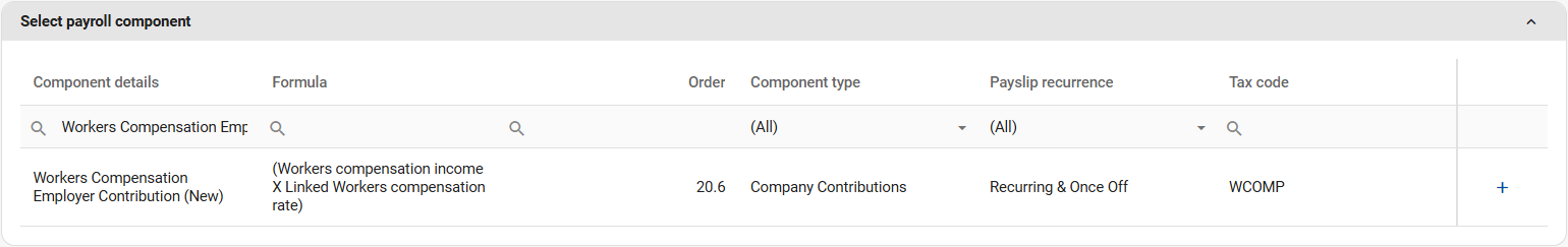 Step 2: Add the Workers Compensation Employer Contribution (New) component on the Recurring Payroll Components screen.