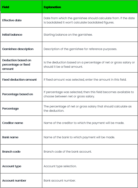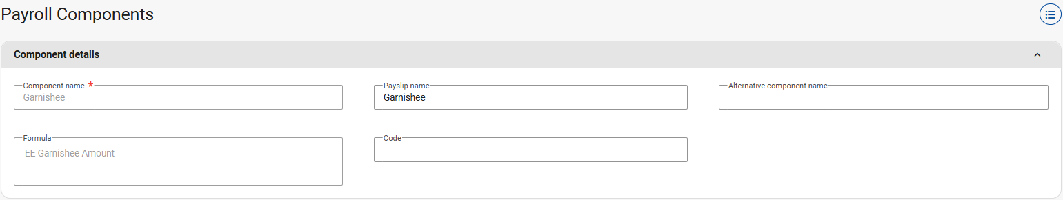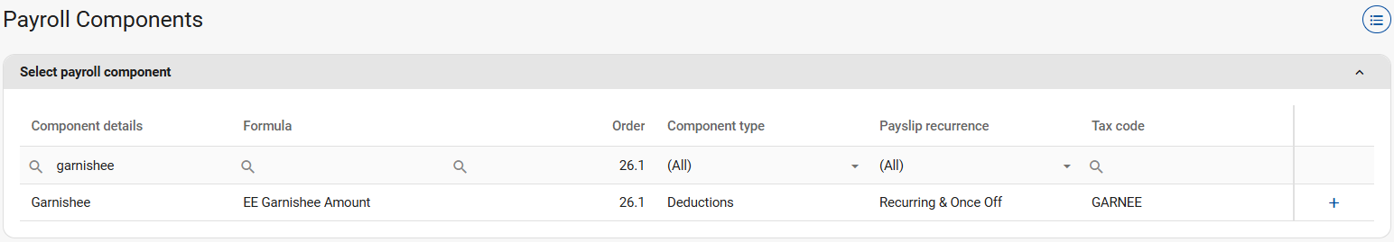 The Garnishee Deduction component has to be created on the company level before it can be set up on an employee's Recurring Payroll Components screen.