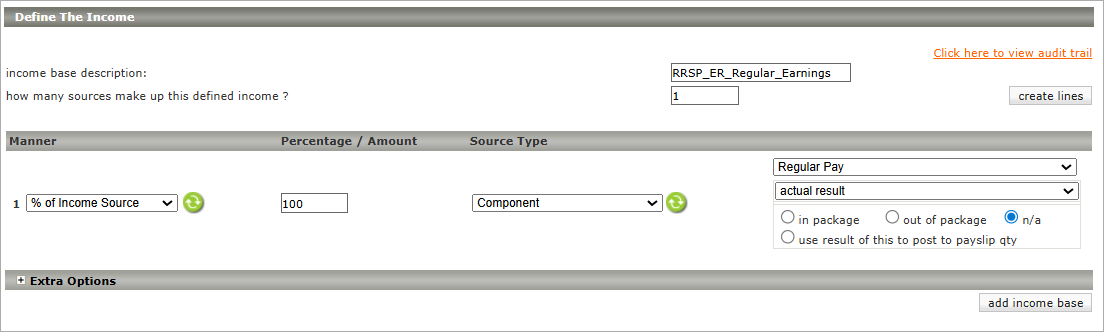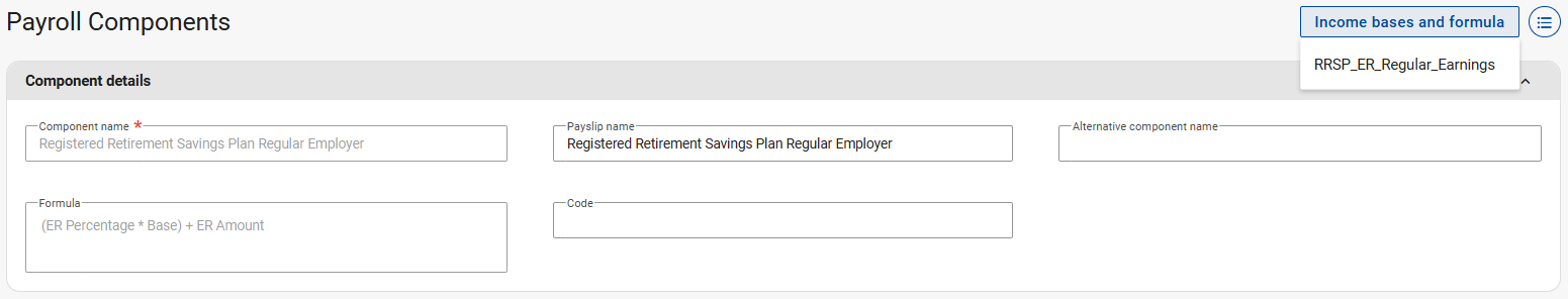 Step 2: After selecting the appropriate component, click the “Income Base and Formula” button to configure the income amount used to calculate the RRSP.