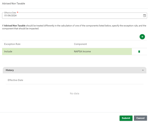date, choose the exception rule for the relevant income base and select the Submit button.