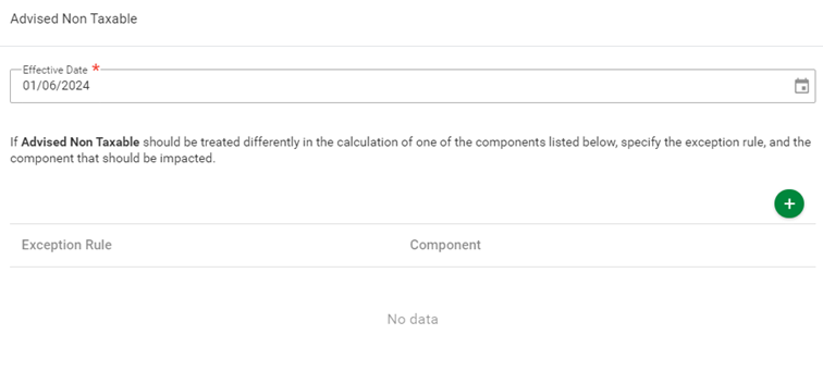 - The Period from field on the top left of the Component Taxability screen is not applicable, only the effective date on the