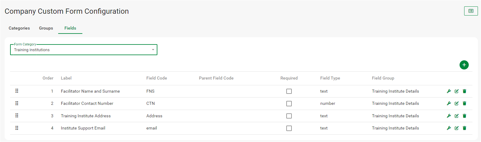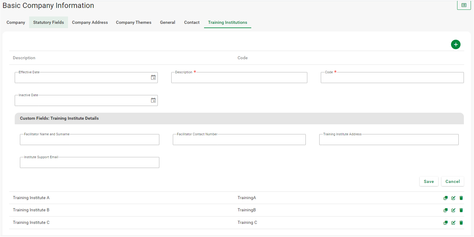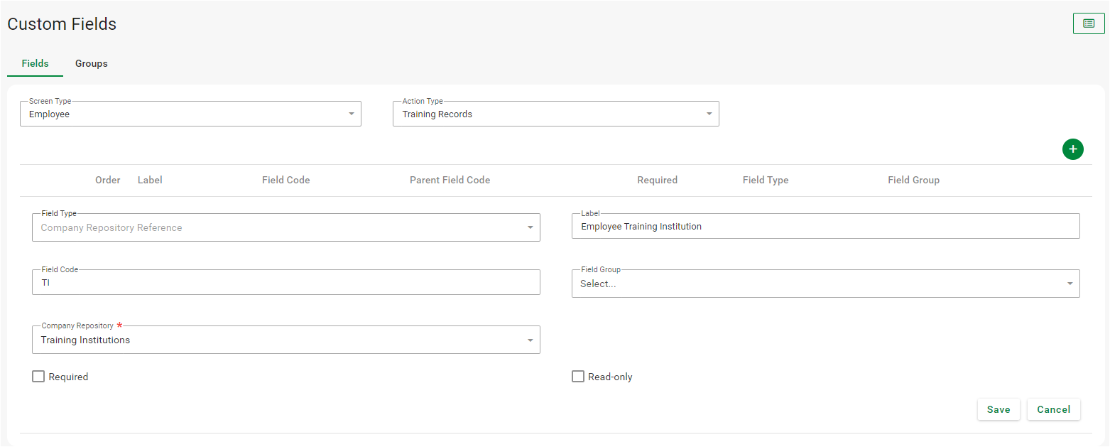 training. A Company Repository form must be created where details can be stored per institution with its associated form group and relevant fields before it can be linked to employees.