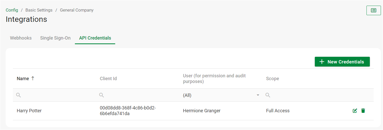 Navigate > Configuration > Basic Settings > General Company > Integrations