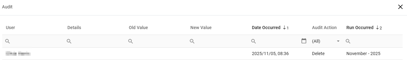 The Audit Trail window on the Edit Payslip screen allows users to view any changes made to an employees Edit Payslip screen.