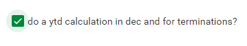 The "do a ytd calculation in dec and for termination" checkbox can be enabled on the Statutory Fields tab on the Basic Company Profile screen to validate the above logic.