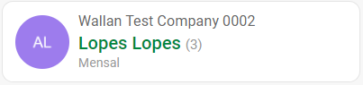 - Each card represents an employee, showing the name, company, frequency of payment, and a number that probably indicates some type of identification or number of associated records.