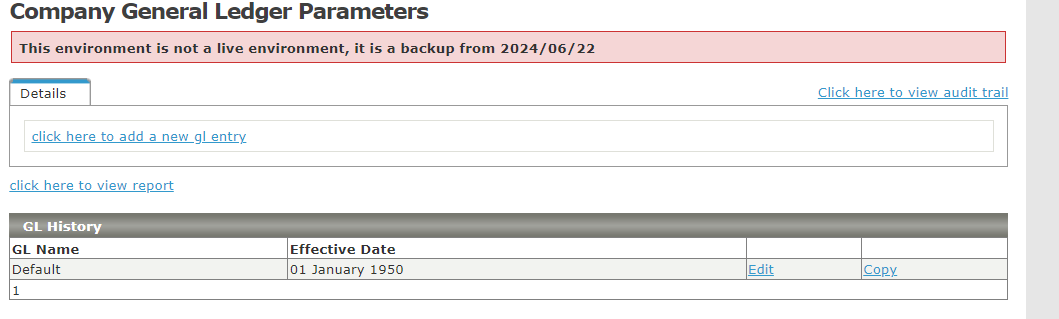The Company GL Codes report lists the components linked to the General Ledgers configured within a company (it includes their component codes and GL account and GL contra account numbers). The report can be downloaded by selecting the "click here to ...