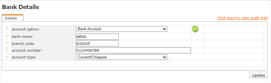 If you have selected to pay via debit order, please note that the main billing run is on the 8th of every month. The account from which the debit order will be recovered from, can be accessed on the Banking Details Screen.