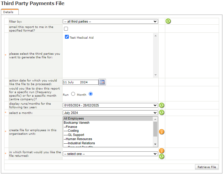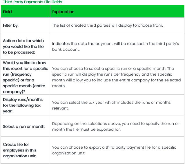 This feature is available on Premier and Master editions If a user does not have access to all frequencies within the company, the user will not be able to extract the Third Party Payment File per month.