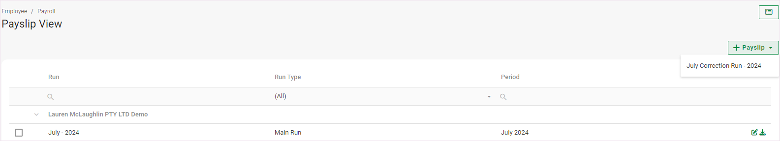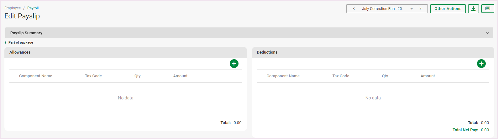 A payslip record for the relevant employees can be created from the Edit Payslip Screen.