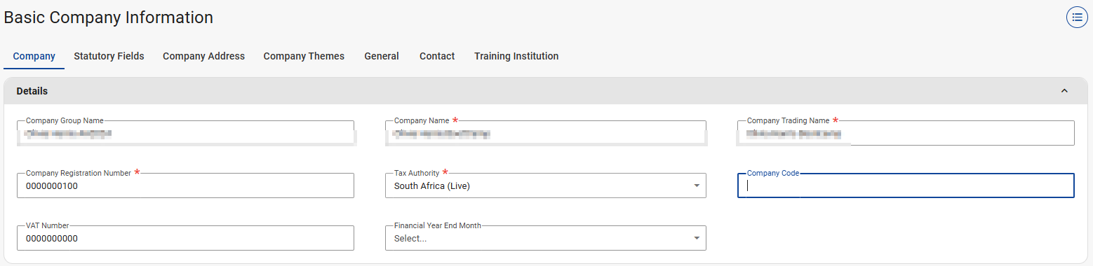 Select the Company Details tab.