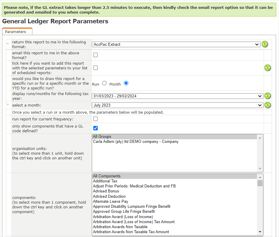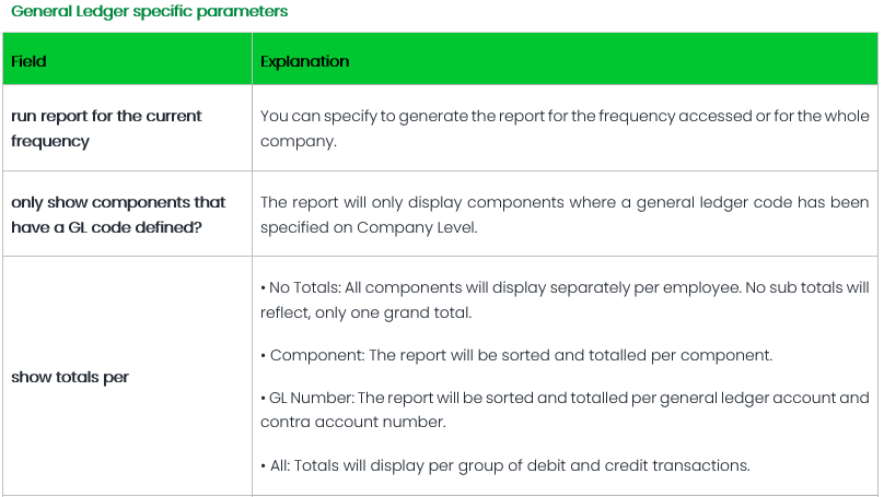 The General Ledger Report provides a general ledger listing of the financial entries for a chosen run or period. You have the option to select a file format to export the report from the payroll. The file can then be imported to the company’s accounting software package.