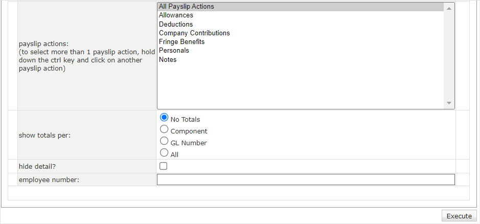 Once the General Ledger Report has been generated, you have the option to execute an Exception Report by selecting it from the Report Parameters. The Exception Report compares payslips totals to general ledger totals and display differences. The differences will display per employee with headings for Employee Code, GL Name, Component, Payslip MTD Total, GL Debit Amount, GL Credit Amount and Difference.