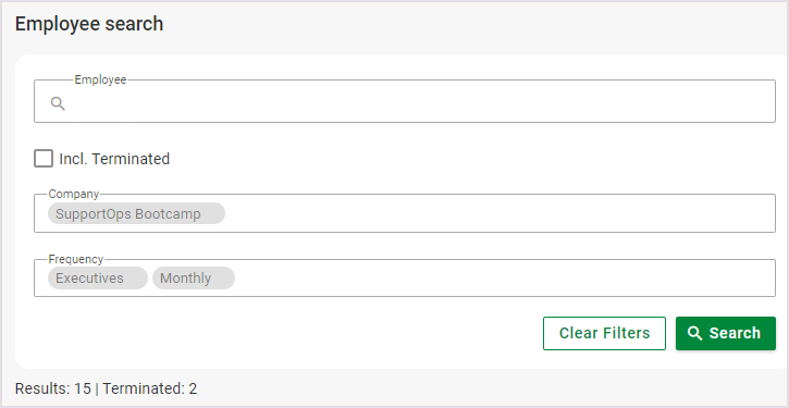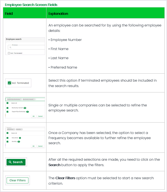 - When searching for an employee, the system will search across all frequencies e.g. you do not need to change to the weekly frequency before searching for a weekly employee. The weekly frequency will automatically be selected when selecting a weekly employee.