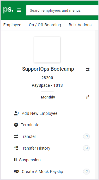 Note! The employee search feature have been enhanced at the top left of the application to include the ability to search for menu items as well