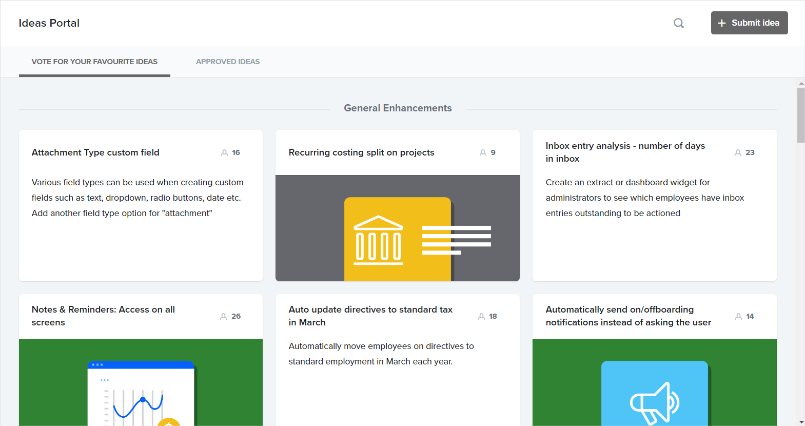 The Ideas Portal gives you the option to log an idea for a new feature or system enhancement that will improve your PaySpace Product experience.