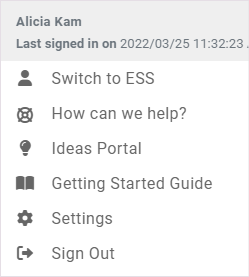 Should a Company Level User have the same e-mail address specified for the User profile as well as the ESS profile, this option will be available to navigate to the ESS portal.
