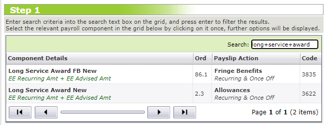 A Long Service Award can be processed on employee level by first creating the following components on company level.