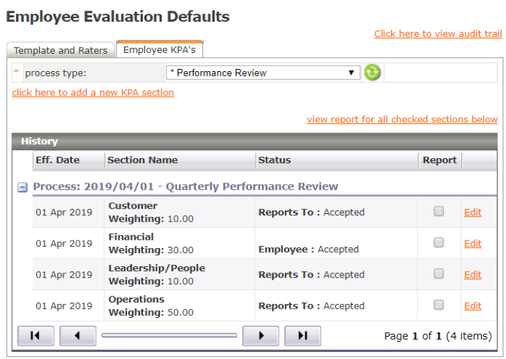 This feature is available on the Premier and Master payroll edition. A performance evaluation can be setup as a Performance Review, 360 Review or an exit interview, and is set up using a template. The template can include the following: • Set ...