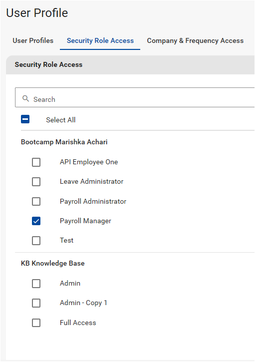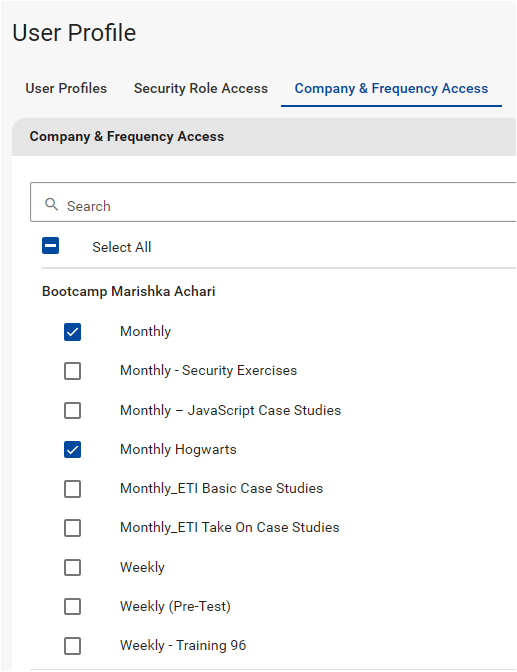 Proceed to link the user to the applicable security role/s, companies and/or frequencies.