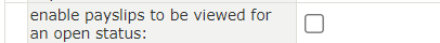 By default, employees are only able to view payslips on ESS in closed runs. When the "enable payslips to be viewed for an open status:" option is selected, it allows employees to view their payslips on ESS in an open run.