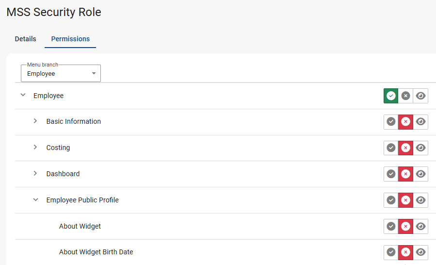 Step 2: Click on the Permissions tab and expand the Employee Public Profile parent permission.