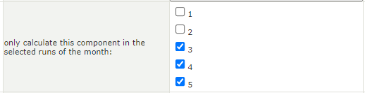 To configure the system to calculate a component for a specific week within a month, enable the "only calculate this component in the selected runs of the month:" setting when editing the component on the General Ledger Parameters screen.